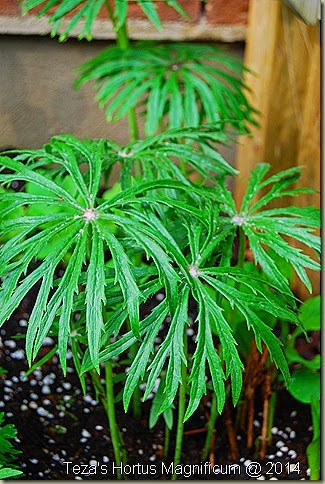 Every passing garden season reminds me of the importance of one virtue in particular: Patience! As a child, I was often the target of a phrase that resonates in that warm glowing aura of remembrance: ‘Patience dear Prudence!’ I wanted the freshly sown Zinnia and Marigold seeds to sprout and bloom before my eyes! Its a wonder I did not introduce myself as Prudence when I registered for kindergarten, so often did I hear the name! Dysosma versipelle is a stunning Asian subspecies of Podoplyllum. Two years later I have three tiny but easily recognizable leaves.